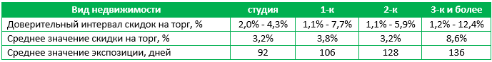 2.   Срок экспозиции и скидка на торг для квартир в г. Краснодаре